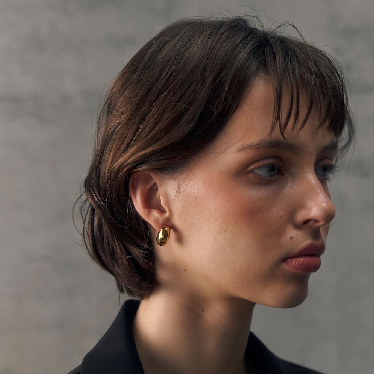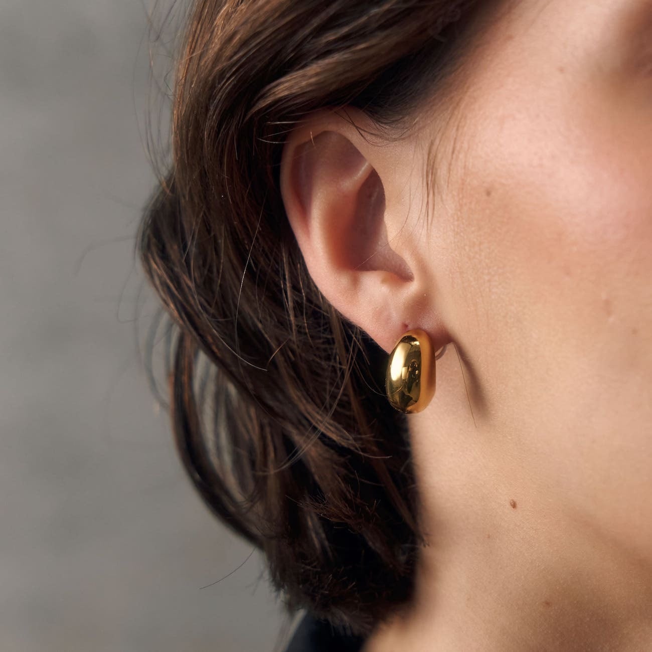 ころんとした立体感と艶やかなフォルムが耳元に上品なアクセントをプラス。