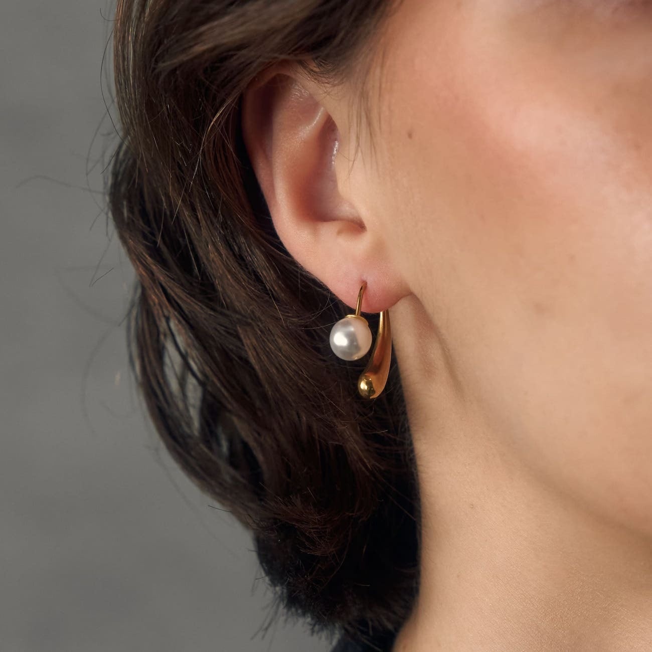 柔らかなカーブラインにパールをあしらい、耳元に上品な華やかさをプラス。シンプルながら存在感があり、オフィスから特別な日まで幅広く活躍します。