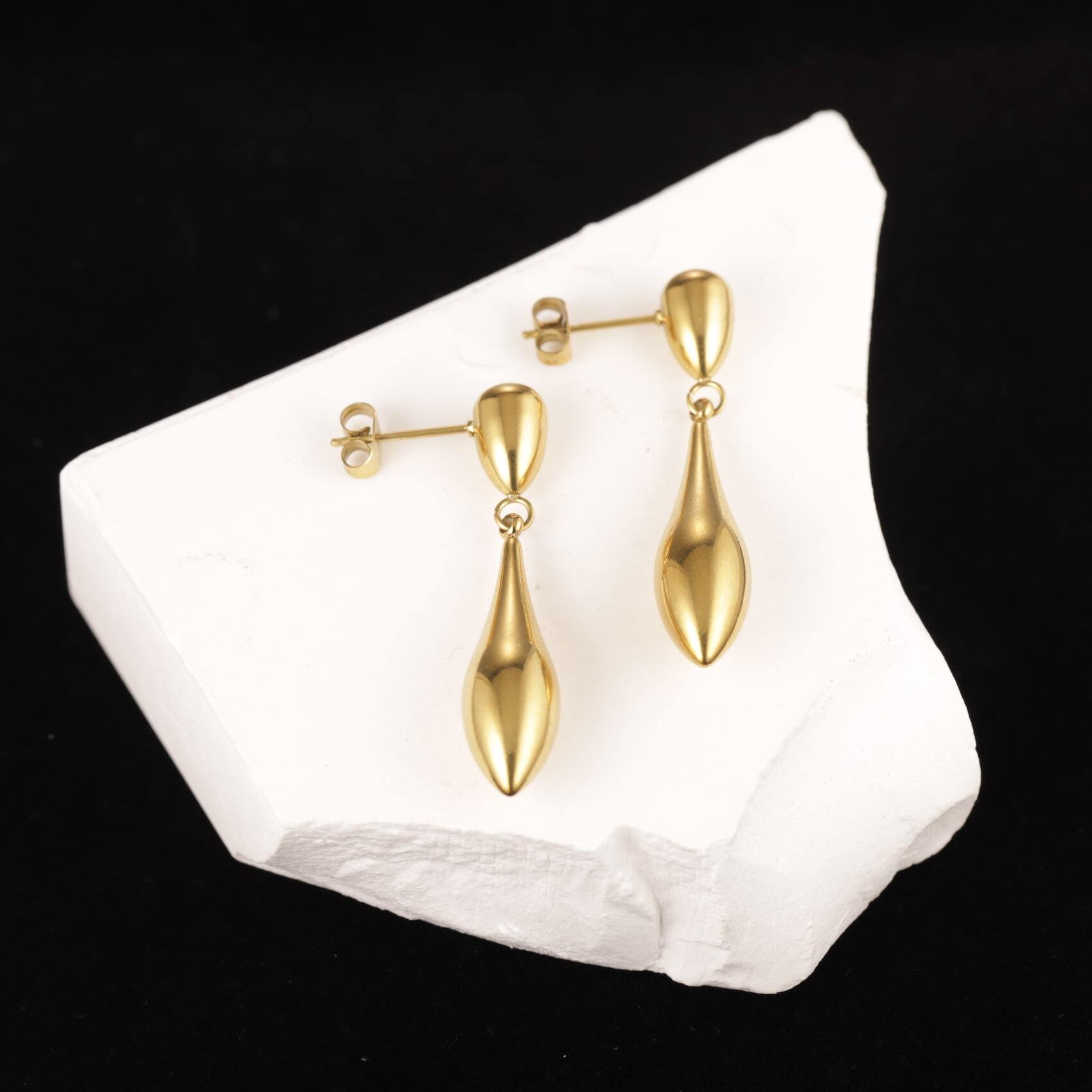 流れるような曲線美と艶やかなゴールドが、顔まわりを華やかに演出。揺れるたびに光をまとい、特別なシーンやドレスアップに映える一品です。