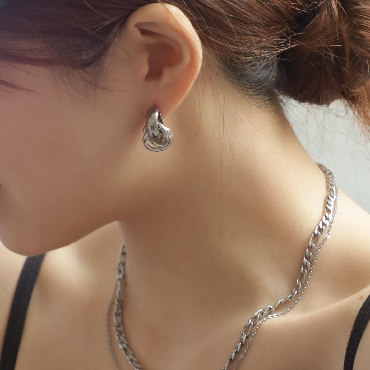重なり合う光とカタチが、静かに存在感を放つ。洗練されたノット(結び目)デザインが魅力のピアス。