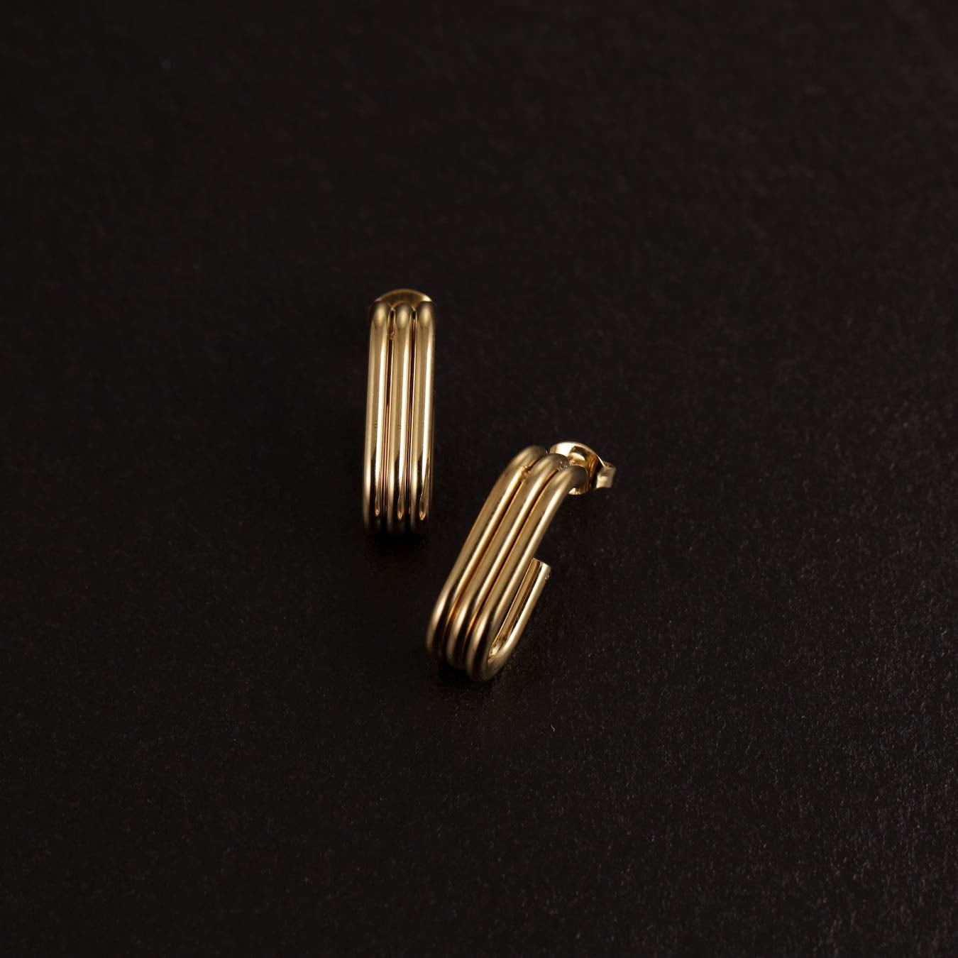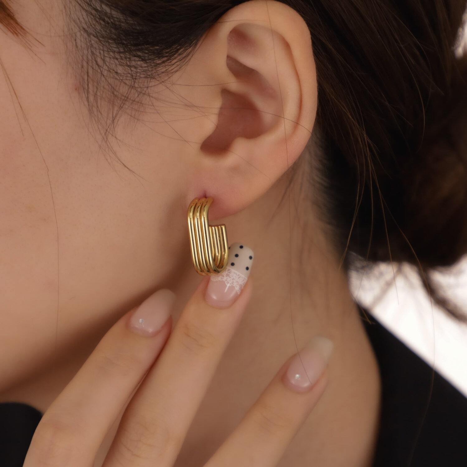 縦長フォルムのフープが、耳元をすっきり見せてくれるデザイン。