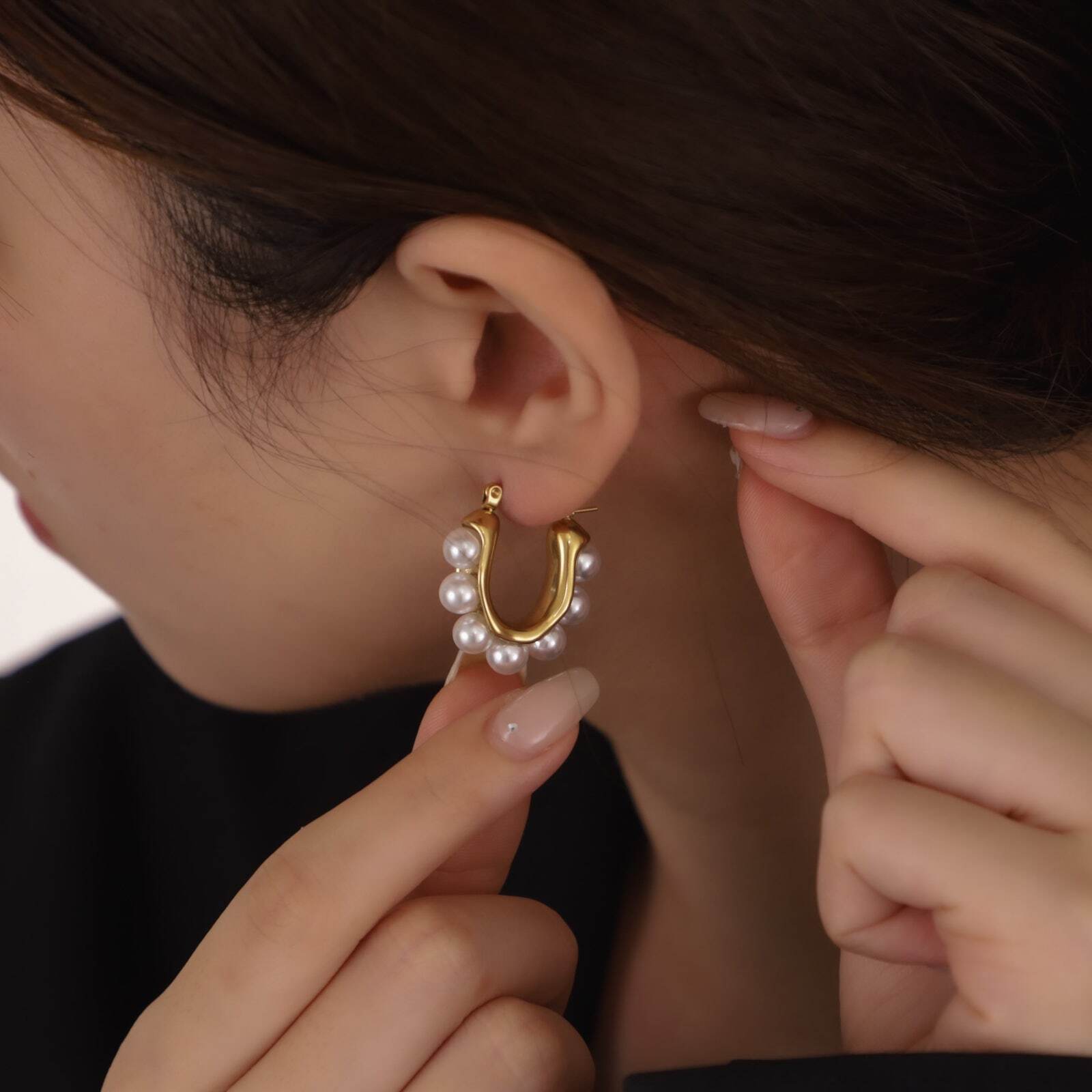 【3/10新入荷】316L glam pearl hoop pierce #p168