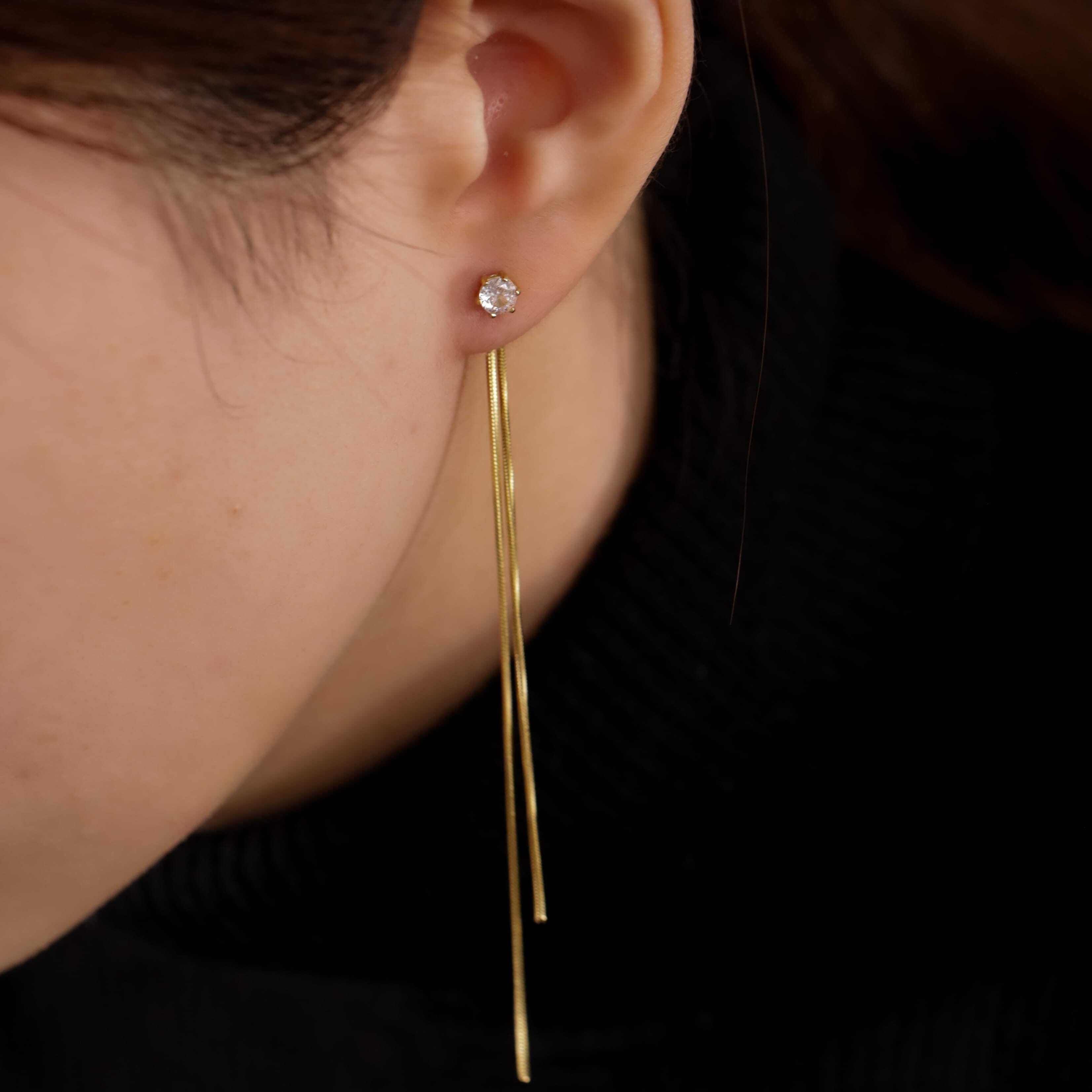 キラキラと輝くジルコニアがついたロングタイプのデザインです。シンプルながらもエレガントなスタイルが、動くたびに繊細な輝きを放ち、洗練された魅力を耳元に添えます。樹脂タイプのキャッチも付いているのでジルコニア単品での着用もできるので2wayタイプでご利用いただけます。