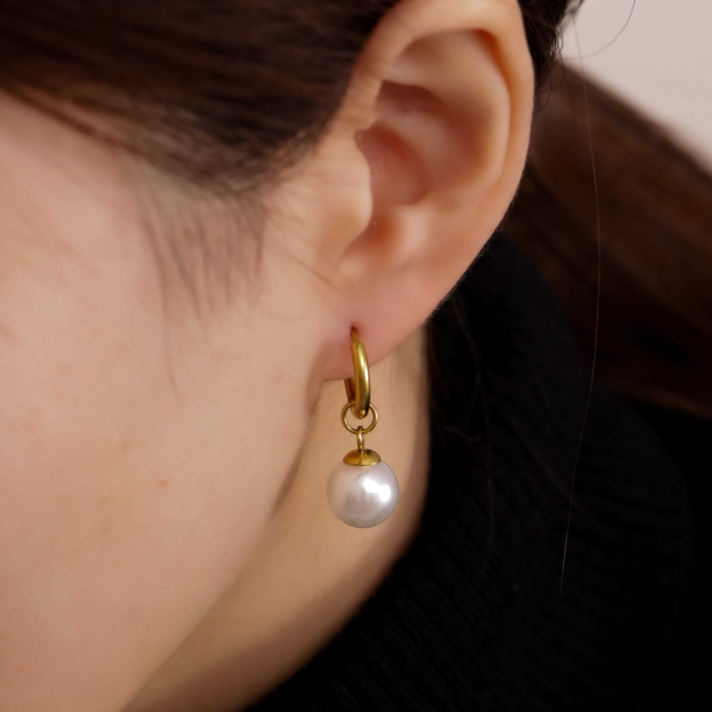 取り外し可能なパールチャーム付きのフープピアス